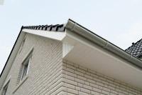 Pfettenköpfe, Schornstein, weißer Klinkerstein